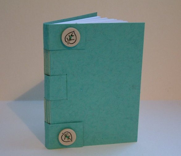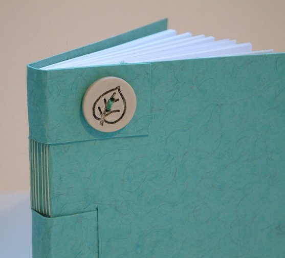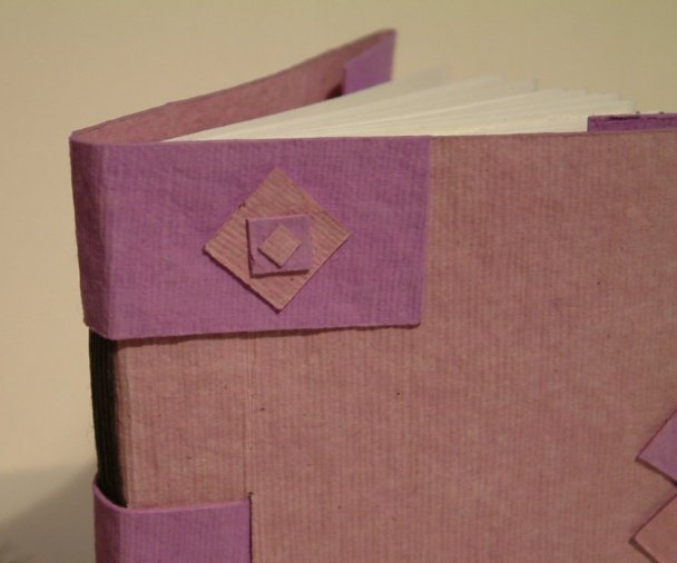 Another "Strap" book - this one is made from handmade paper from Bangladesh that has a contrasting colours on each side (a result of the paper being dried in the sun!) The decorative 'buttons' are also made from the handmade paper.