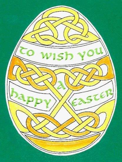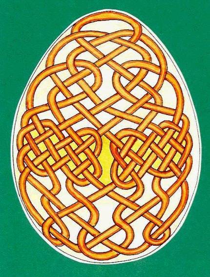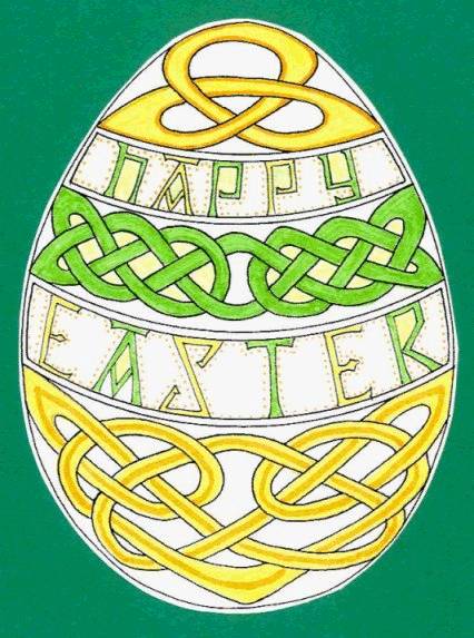 The knotwork Easter Eggs were designed as a project for a Celtic workshop, incorporating both knotwork and calligraphy.