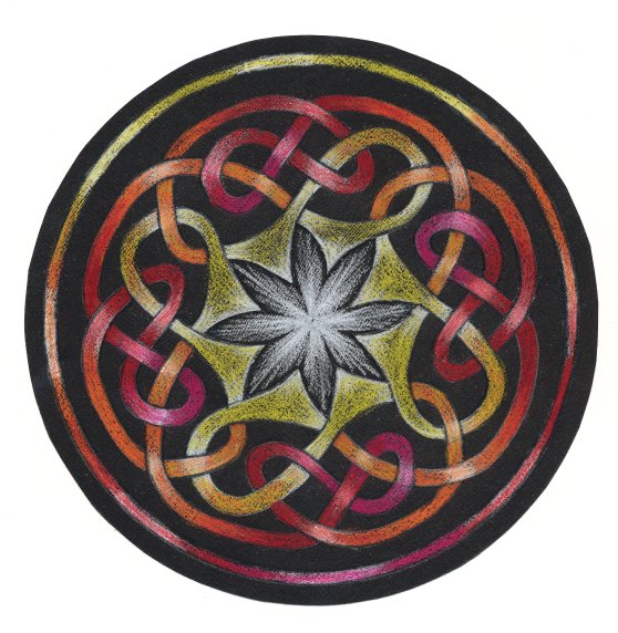 A celtic cross - one of a set of similar designs. Also made in white Karisma crayon on black Ingres paper.
