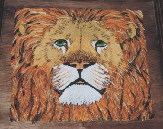 Click the thumbnail below to see an example of the work of a friend of mine - who introduced me to quilling and calligraphy "several" years ago. The photo was taken at a Guild A.G.M., at which there are always lots of impressive pieces on display and ideas to be found. Before you click the thumbnail, believe that this lion's head is quilled!