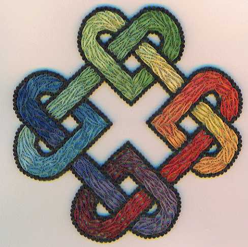 The fourth row shows a quilled celtic knot - a combination of two interests of mine! - which is a good advert, now I come to think of it, for all the wonderful colours available from JJ Quilling Design. !